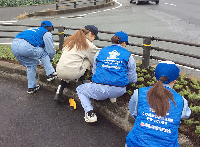1シーズンに1回、ボランティア活動をしています。道路の除草・植樹を行い、地域の環境美化に努めています。