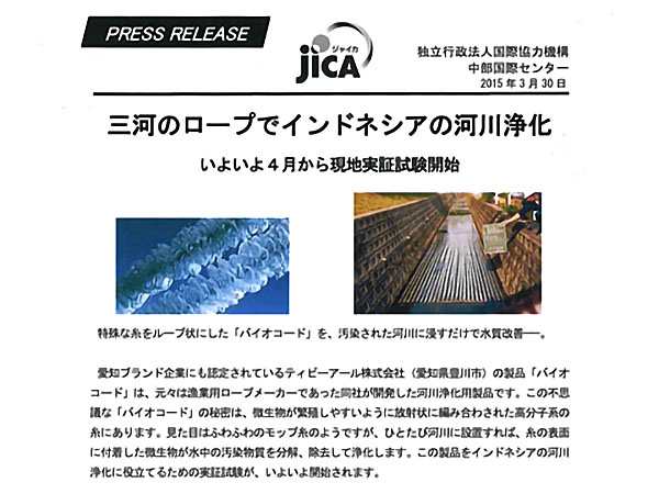 美しい地球を美しいまま子孫に伝えたい。組紐ロープにモールを形成させ、組紐状の固定床に微生物を大量に保持できるバイオコードを開発し生物膜法による水質浄化に貢献。河川や湖沼、ダム湖の浄化に数々の実績を得ています。