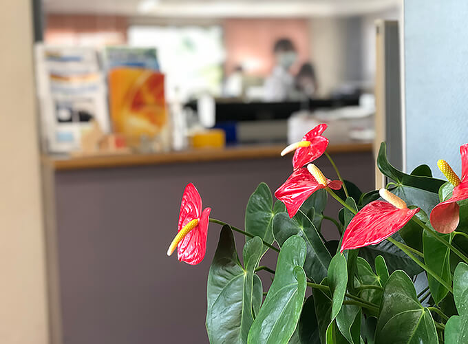 街からは少し離れた立地ですので緑の多い環境です。窓の外に目を向けると少し癒やされたりします。
