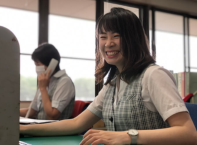 パソコンでの事務作業のほかに、工場での商品の進捗確認や出来上がった物の納品準備もあります。デスクワークだけじゃないところも好きです。