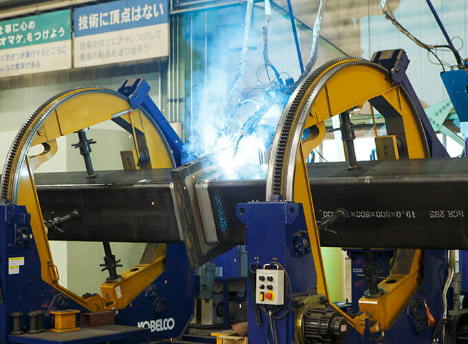 工場で最新の溶接ロボットを完備することでサイズの大きな鉄骨の加工も可能にしています。