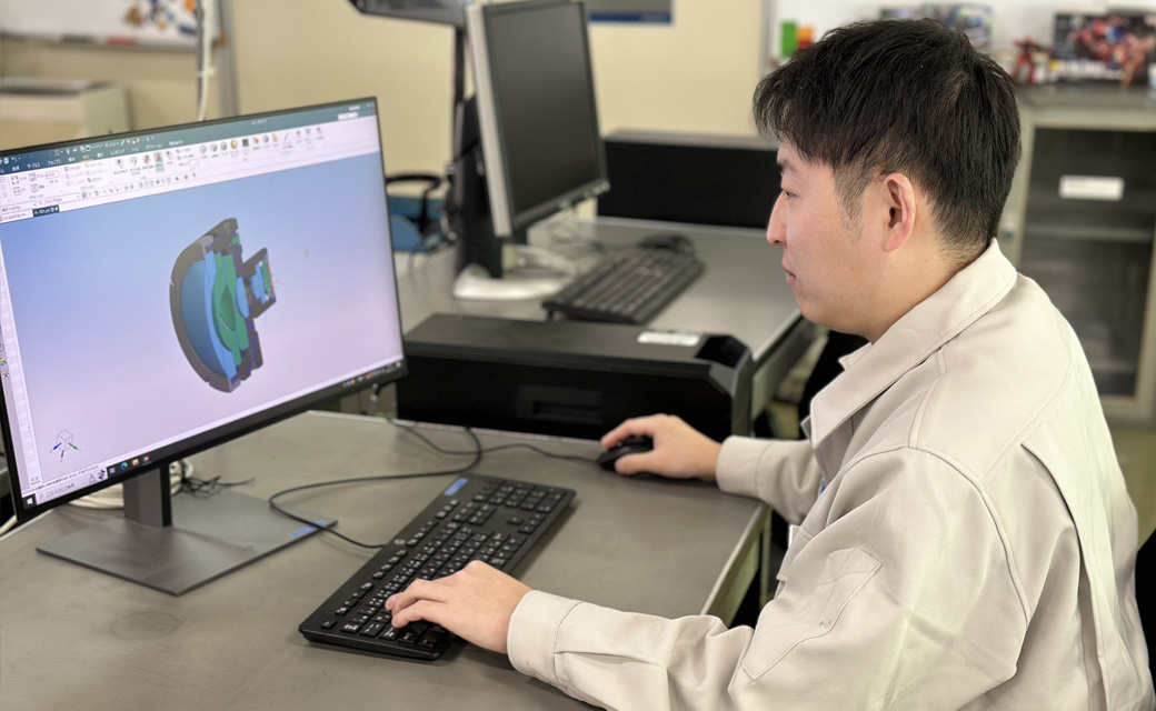 私の仕事は、お客様から受けた製品が試作段階から完成するまでの、スケジュール管理やサポートをしています。海外のお客様を担当しているので、英語を使って要望を工場に伝えたり、お客様が訪問されたときには打合せや工場見学の対応をしたりしています。製品ができるまで予想外の問題などに直面することもありますが、お客様や工場、先輩、上司と相談しながら問題を解決し製品を完成させるまでサポートする仕事です。