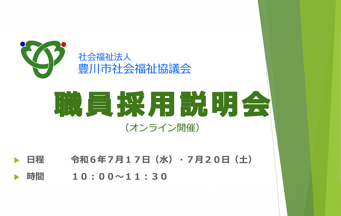 前の月 2024年 7月のイベント 次の月 日 月 火 水 木 金 土 1 2 3 4 5 6 7 8 9 10 11 12 13 14 15 16 17 18 19 20 21 22 23 24 25 26 27 28 29 30 31 10:00~11:30 豊川市社会福祉協議会 職員採用説明会 採用説明会(オンライン開催)を令和6年7月17日・7月20日に実施いたします。 社協の概要や業務説明、採用試験についてです。.... 詳細 10:00~11:30 豊川市社会福祉協議会 職員採用説明会 採用説明会(オンライン開催)を令和6年7月17日・7月20日に実施いたします。 社協の概要や業務説明、採用試験についてです。.... 詳細