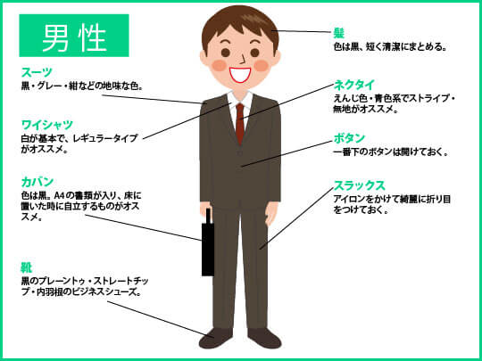 服装に失敗していると、マイナスの第一印象を与えてしまうリスクがあります。会社説明会で失敗しないための服装マナーを図解しました。図解を参考に、正しい服装マナーをマスターしましょう。